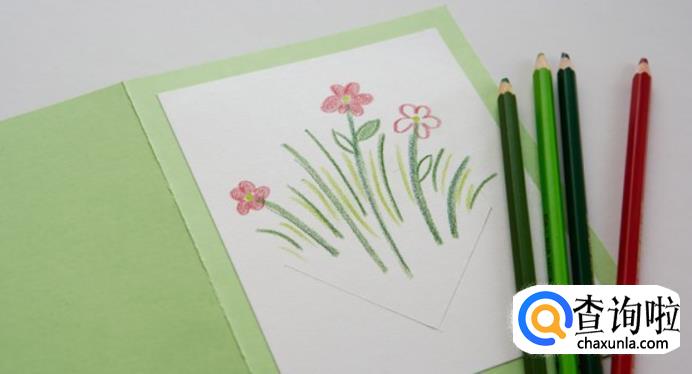 为了贺卡的好看,我们可以利用彩色铅笔进行手绘,画一些花花草草增加贺卡的美观性。