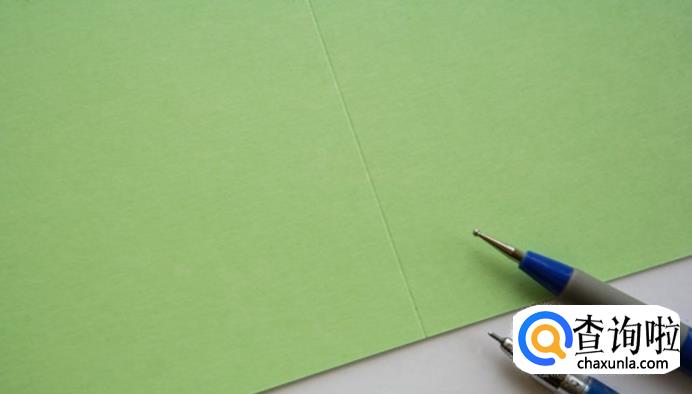 接着,我们把绿色卡纸对折,准备用对折的绿色卡纸制作卡片的主体。