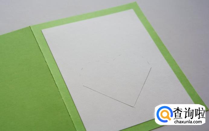 然后,我们需要裁切白色的卡纸,作为内里。同时把白色的卡纸裁切出一个倒三角形的结构来。如下图所示。