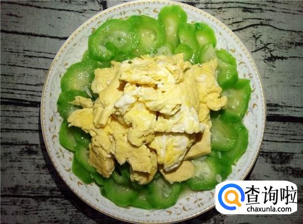 把鸡蛋和丝瓜翻炒均匀,即可出锅。