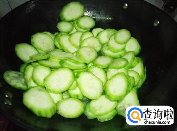 丝瓜削皮,切掉头尾,然后切成薄片。