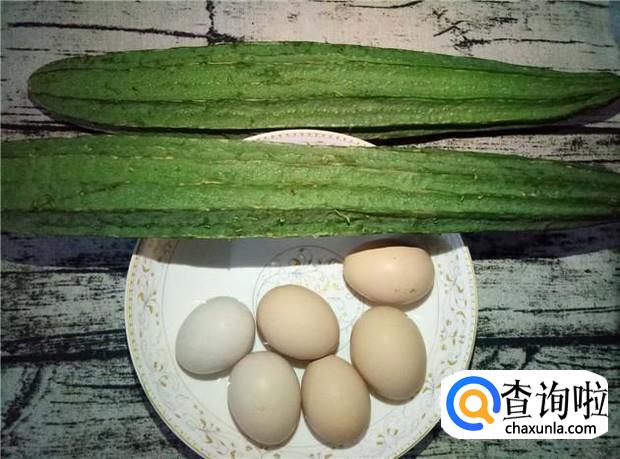准备好所有原材料:丝瓜两根,土鸡蛋六颗。