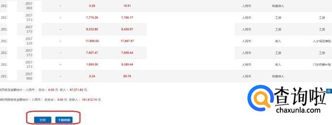 之后就能看到最近一年的工资收入详情了,下方有两个按钮“打印”和“下载明细”,我们可以点击打印出来,来证明自己的工资。
