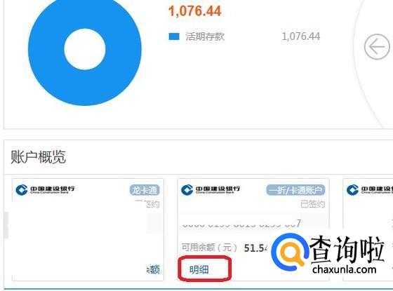往下划动页面,就能看到自己的工资账户,或者点击步骤2图中的“账户查询”,也能找到工资账户,找到之后,如图所示,点击“明细”。