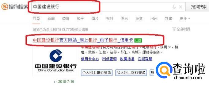 首先,我们需要进入单位发放工资的银行网站,然后登录个人的网上银行,可以用浏览器搜索的方法找到认证的官网进入。我以建行为例。