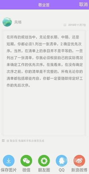 完成所有的步骤后,备忘录内容就生成图片了,用户可以选择保存图片或者分享。