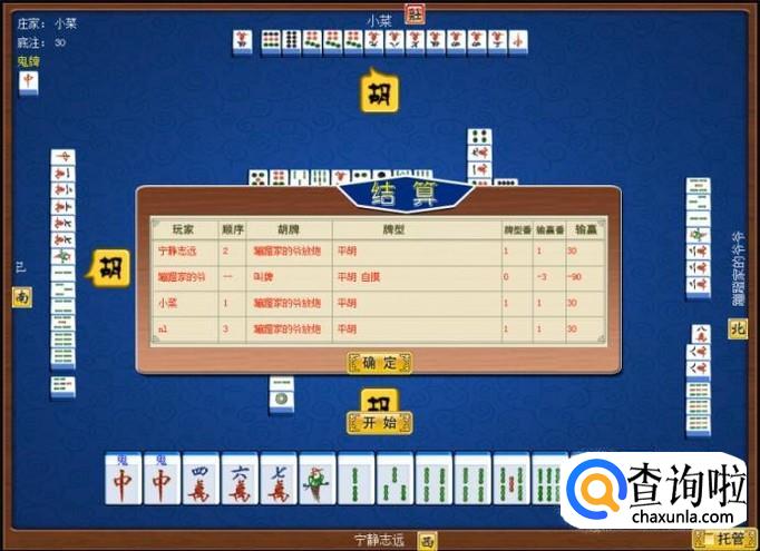 庄家和玩家通过机器桌洗牌,形成了一炮双响牌局,庄家和玩家将在即将进行的一炮双响牌局中,鬼斧神工,血战到底。如图所示。