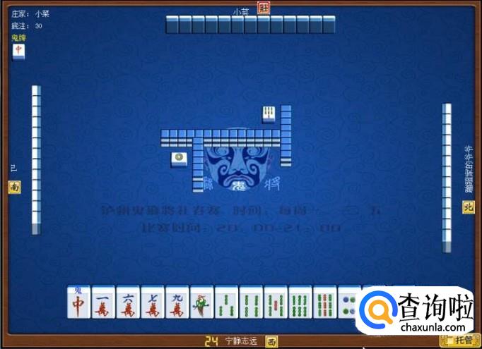 对家是庄家,庄家先出牌。庄家出牌打七条,意味着庄家要打缺条子。如图所示。