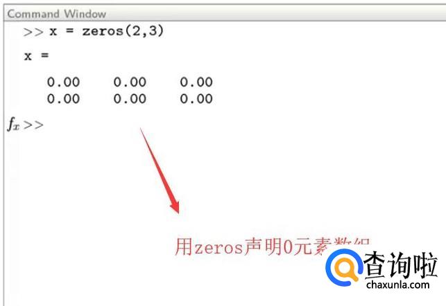 然后如果想声明数值都是0的数组则可以用zeros函数声明,如下图所示