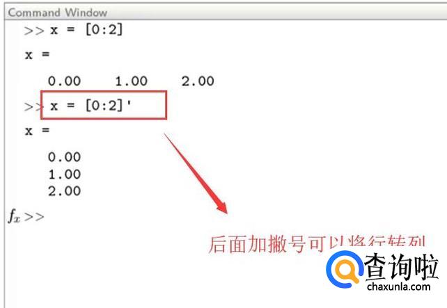 另外如果在中括号后面加上撇号的话则代表将声明的数组由行转化为列,如下图所示