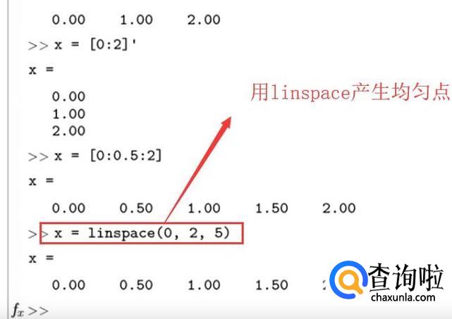 接下来我们还可以用linspace声明数组,如下图所示,运用linspace能够产生均匀点值