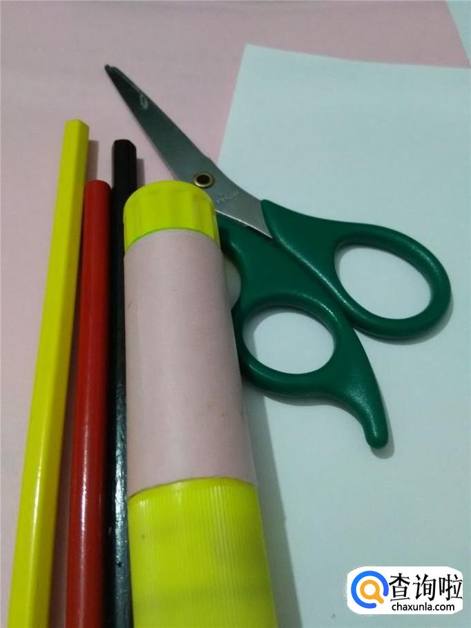 在彩纸上下两边用胶棒抹上粘胶,把两边粘在一起,围成灯笼。