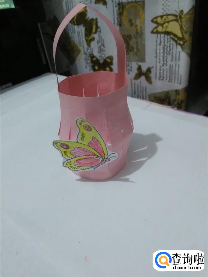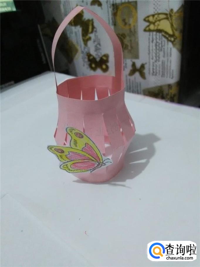 把蝴蝶粘在灯笼正面,蝴蝶灯笼就做完了。