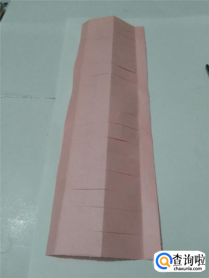 左边折的这一小段不剪,把右边全部剪成小细条。