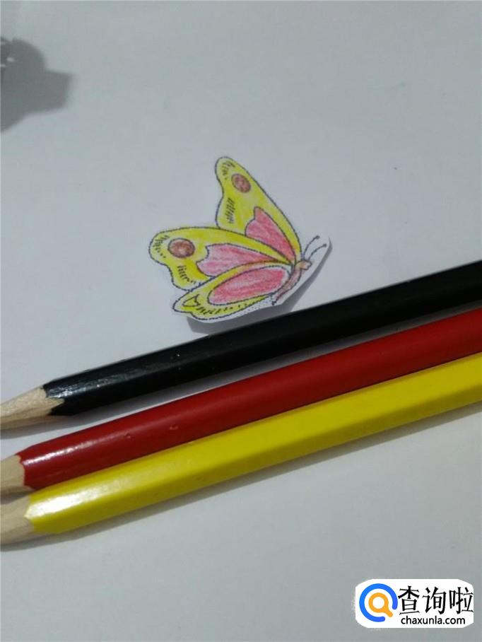 再用彩笔在白纸上画一只蝴蝶,并用剪刀剪下来。