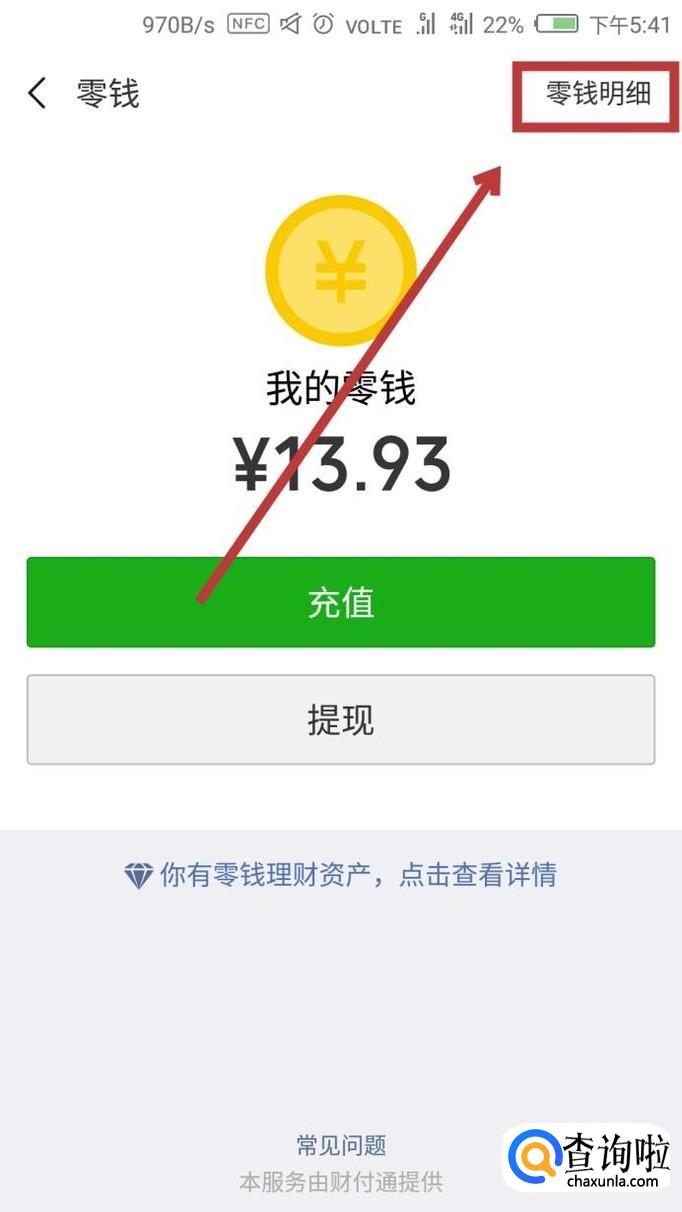 然后在界面右上角找到【零钱明细】,点击进入。