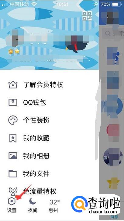 首先我们登录手机qq后点击右上角的头像进入到设置的功能。