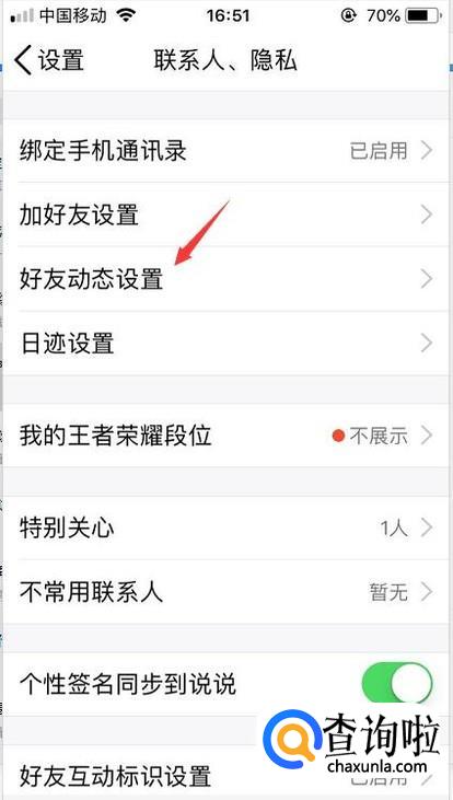 然后我们会看到有一个好友动态的权限设置,点击一下。