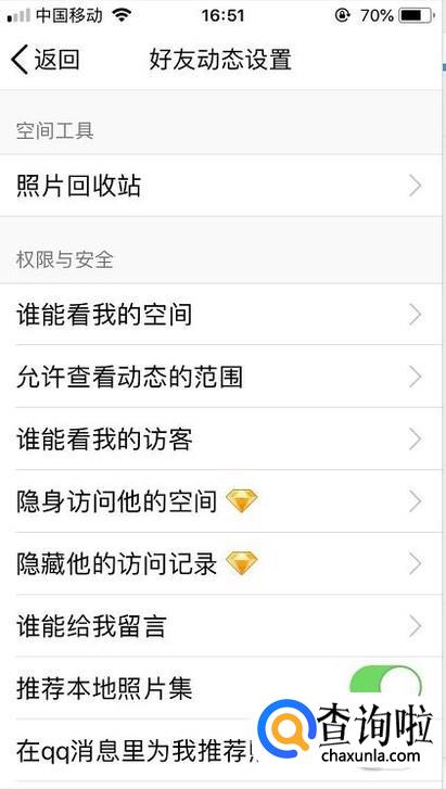 最后我们就可以在谁可以看我的动态里设置空间是否对外开放了。