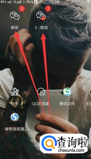 返回到手机页面,长按手机微信几秒,点击微信右下角的“+”,即可完成添加分身,就可以在分身上面登录微信号了。