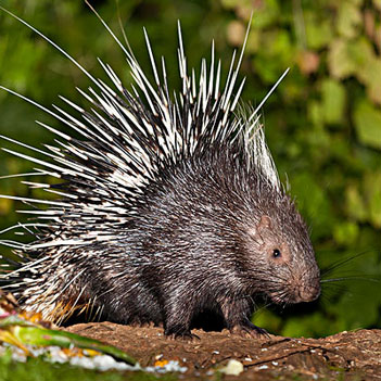 豪猪的脾气有点火爆,身上的刺就是它的防身武器。一旦遇到敌人袭击,它会把刺针竖起来当防卫。豪猪不是猪,其实它和老鼠一样,属于啮齿目,不过身披尖刺,尖刺可以用来防御掠食者。因为豪猪是杂食性动物,和猪很像,也正因此被人们称为“猪”。