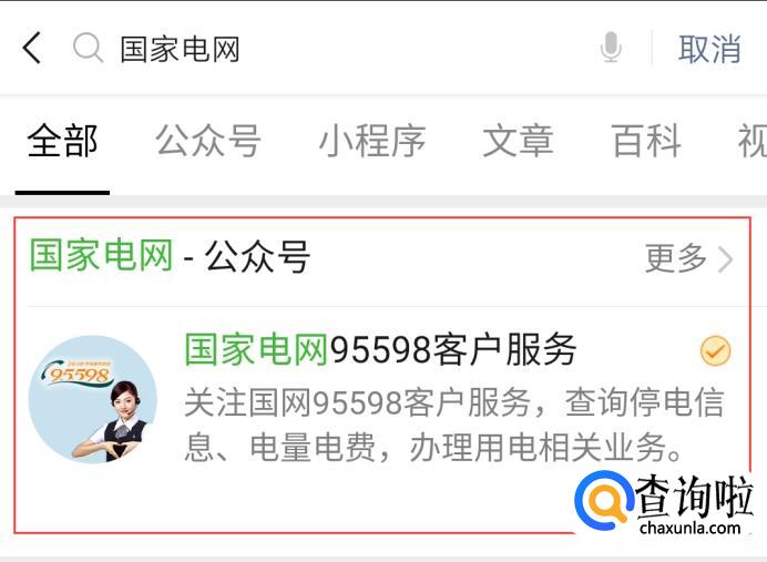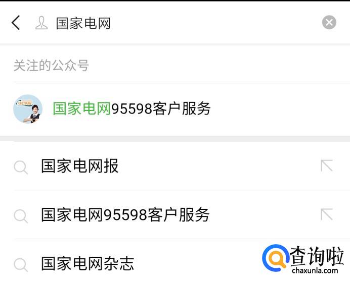 打开微信后,点击搜索框,输入国家电网并搜索。