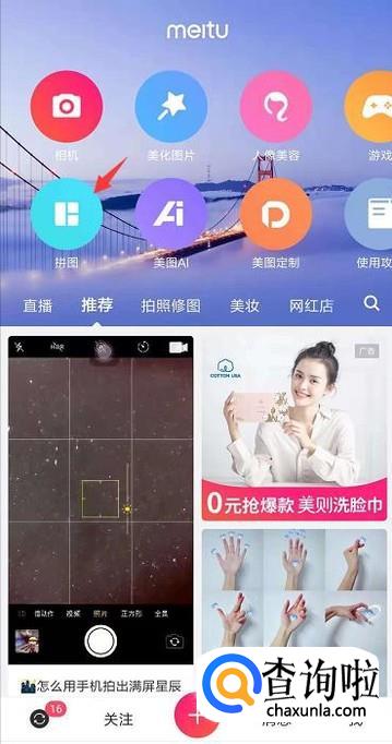 打开美图秀秀后在首页里就会看到一个拼图的选项,点击一下。