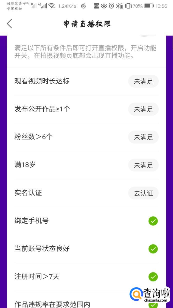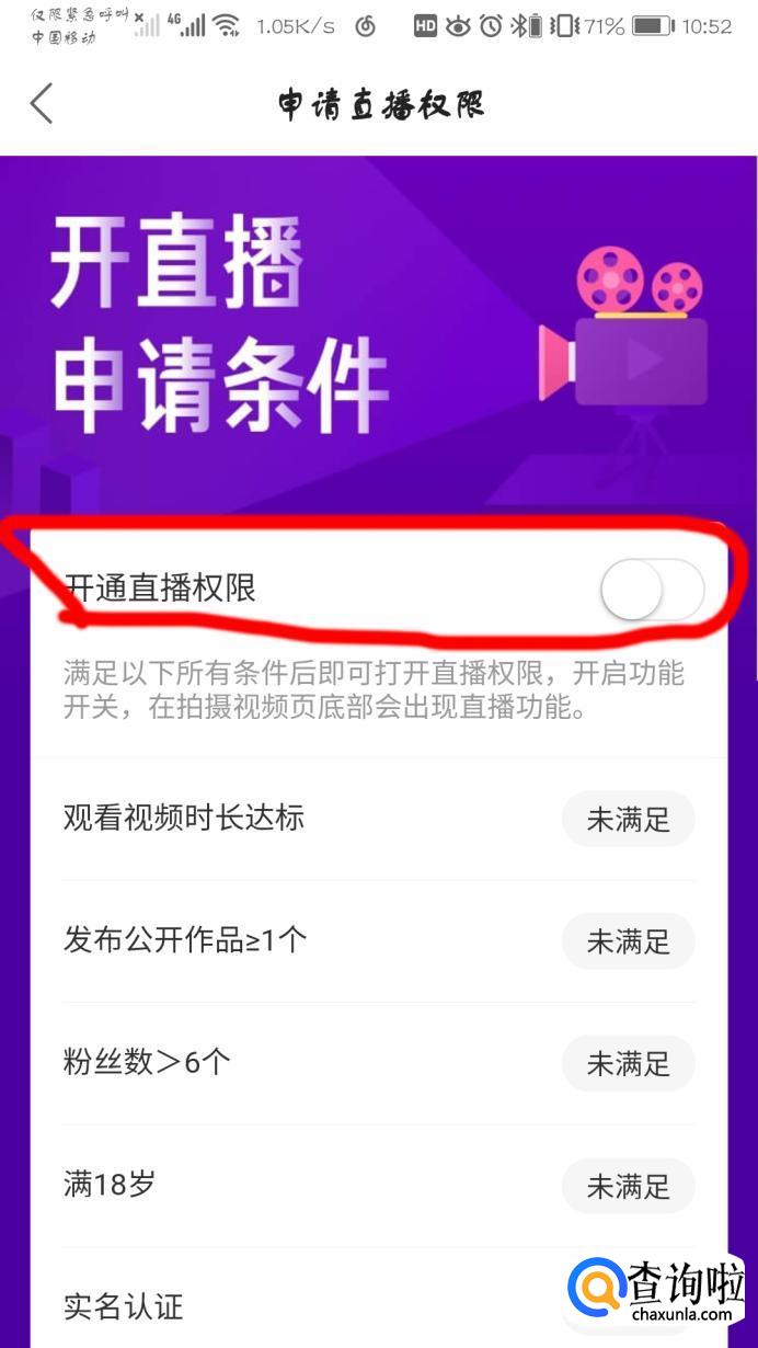 当然,你要把此界面下方需要满足直播的要求的条件。如下图。才可开通直播。