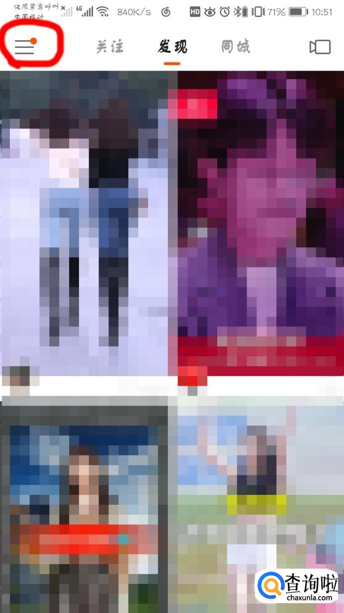 用手机打开快手app。登录,再点击左上角的菜单图标。