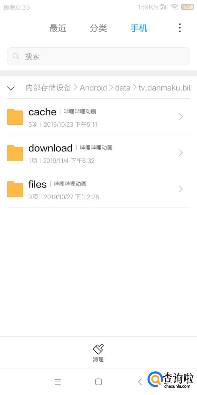 之后找到data进入,找到tv.danmaku.bill文件夹,这个文件夹就是储存哔哩哔哩的文件夹