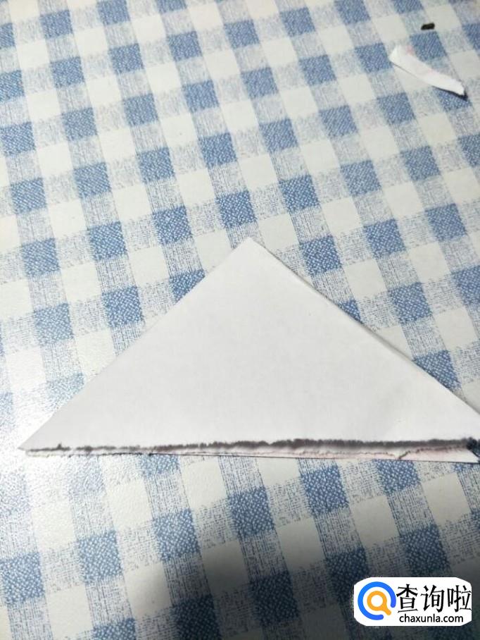 将每个角沿折痕向中心横线交叉印记折叠,形成四个三角形,注意一定要整齐,否则心形随之不整齐。