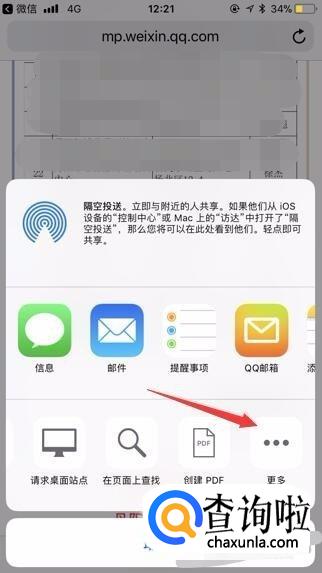 然后选择我们需要截图的界面,点击右上角的小箭头,点击发送到Safari中浏览。