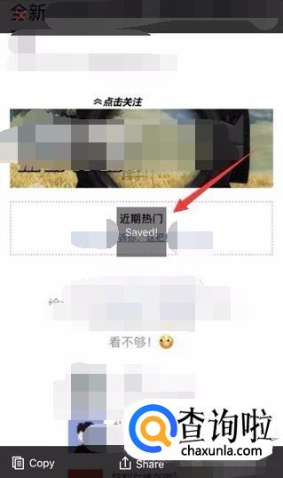 然后进入保存界面我们可以选择copy复制,share分享,save保存,选择save就可以将我们的截图保存下来。