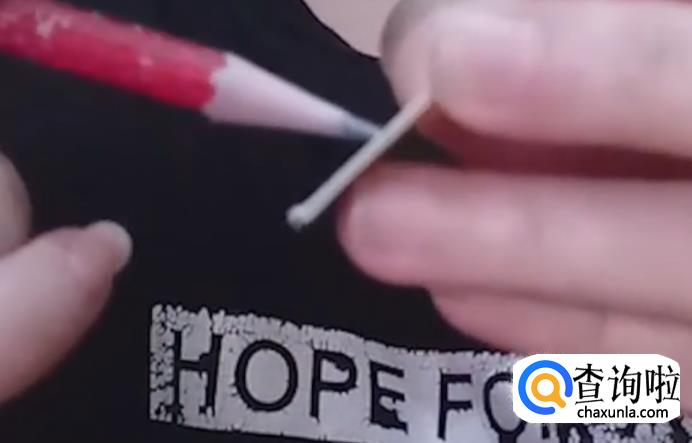 用剪刀等锐物刺穿两个长条的点,注意不要弄伤手指哦。