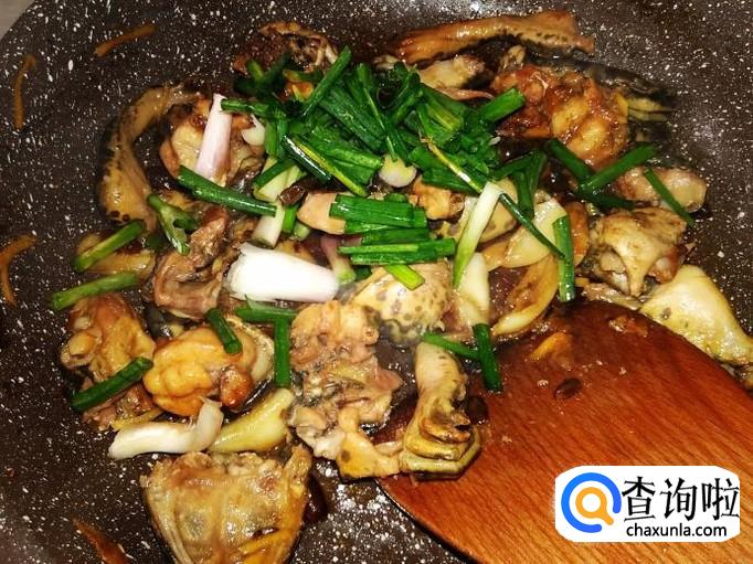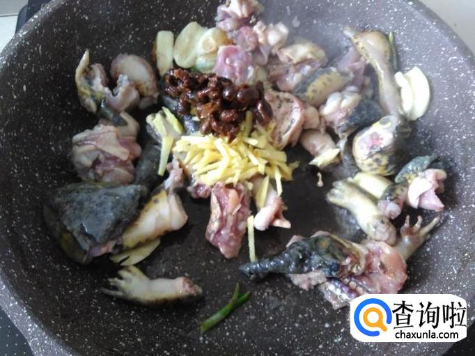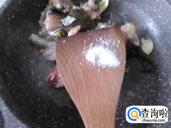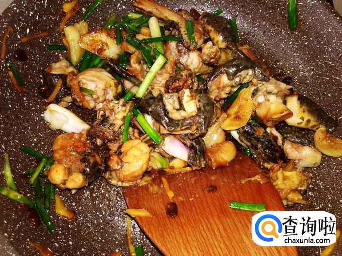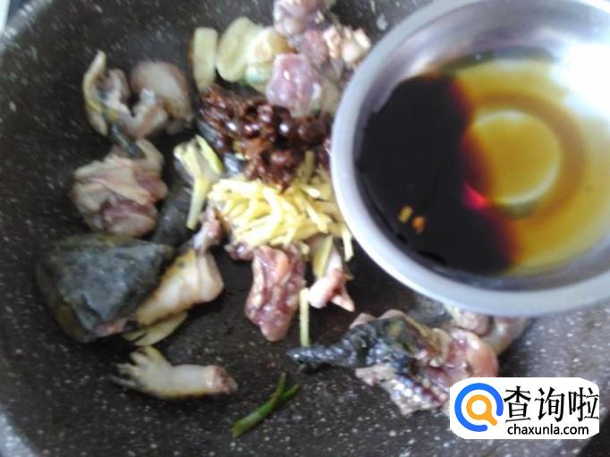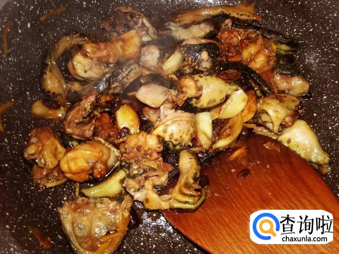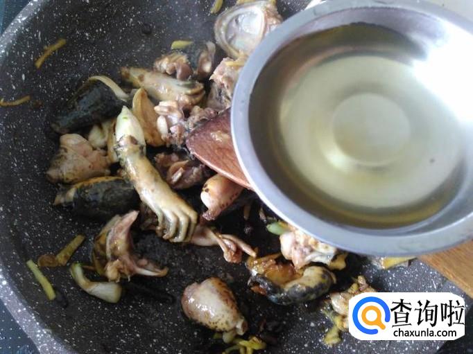 田鸡肉下锅,加适量的盐。