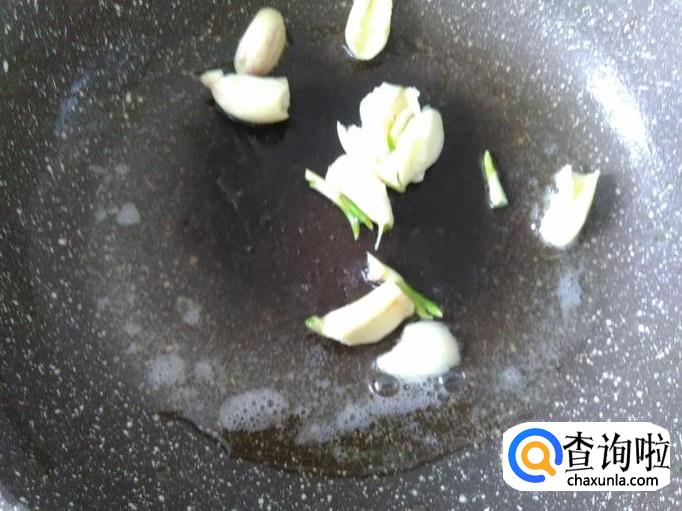 开火下油,放蒜米进去爆香。