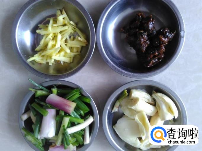 姜丝、豆酱、蒜米、香葱准备好。