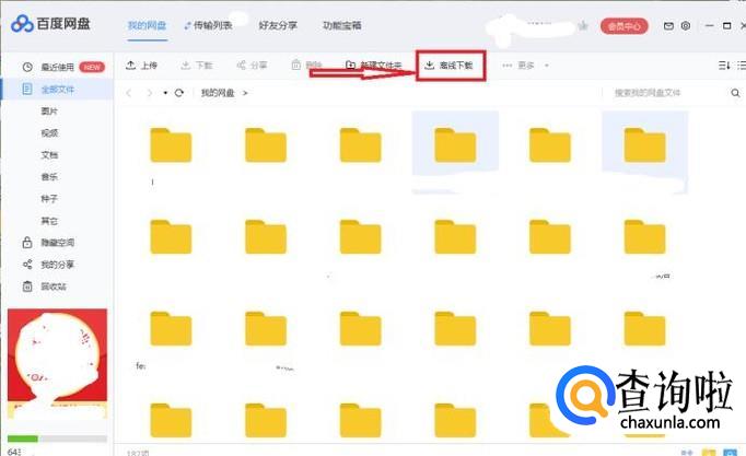 在新跳出来的页面中我们可以看到百度网盘有很多功能,我们点击离线下载。