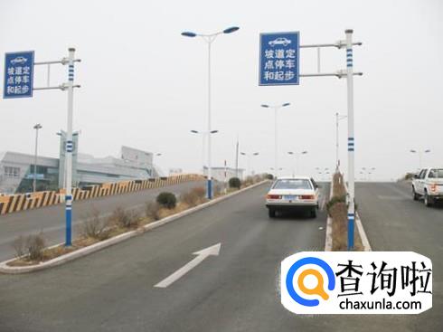 第四步定点停车,爬上坡之后要注意两旁的标杆和停车虚线剪头,注意车速不能过快,不然容易出现问题。当车离停车起步线越来越近就要准备停车了,在靠近停车线20-30cm处要踩离合和刹车降低车速,停稳车,拉上手刹,回正空挡,不踩离合,这样才能算完成。