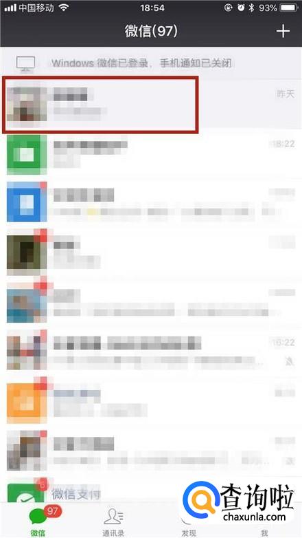 然后点击一个我们自己创建的微信群,如下图所示。