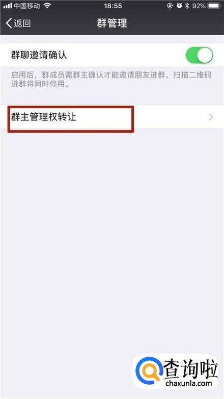 最后你可以点击群主管理权转让,把群主的位置让给别人。