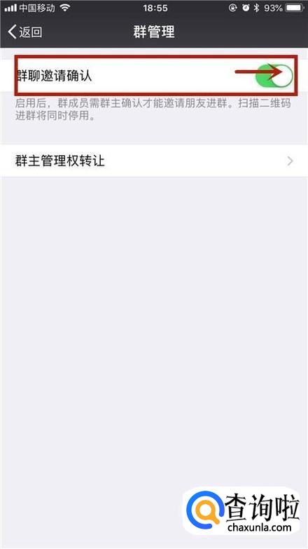 在这里你可以点击开启群聊邀请确认,如下图所示。