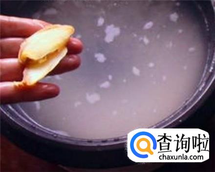 锅里加清水,把大米放进去,加上几片生姜煮开,然后小火慢慢炖,大米熟了之后把肉放进去一起煮。