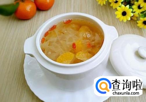 金桔银耳汤,将金桔的皮跟银耳放在一起煮,然后在里面还可以放上几颗红枣,再放上一点冰糖,这样煮出来的汤汁酸酸甜甜的喝起来,口感非常的不错,而且这种银耳清肺润肺的效果非常的棒,所以冬天想要预防肺炎,就应该多喝一点这种汤。