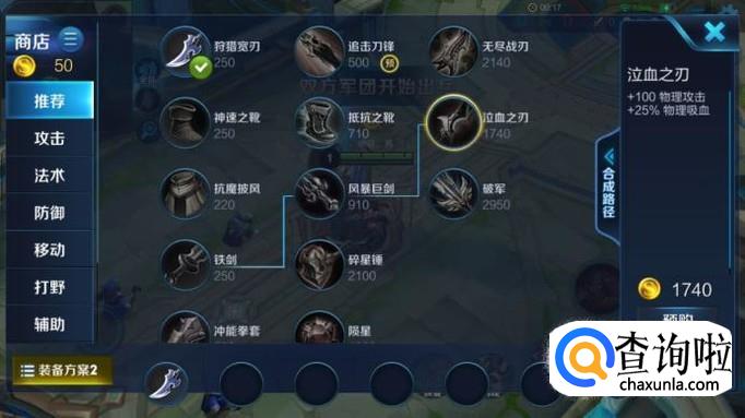 然后就是可以出一把“无尽战刃”来增加暴击概率,以便能秒人,然后怕死的话,还可以出一把可以吸血的刀“泣血之刃”。