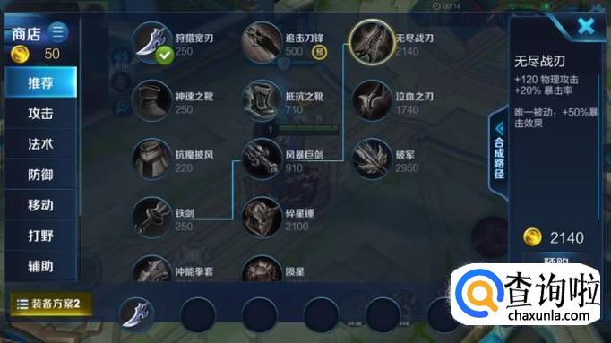 最后,就是如果我们自己不能好好判断的话,可以看那个推荐装备,那里面会给我们推荐三种出装方案,我们就可以省时间啦。