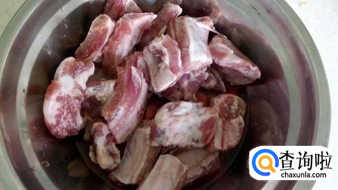新鲜猪肋排适量,我买的时候就让卖家给剁好了块,回家直接取出肋排放入盆中,用水冲洗干净肋排待用。
