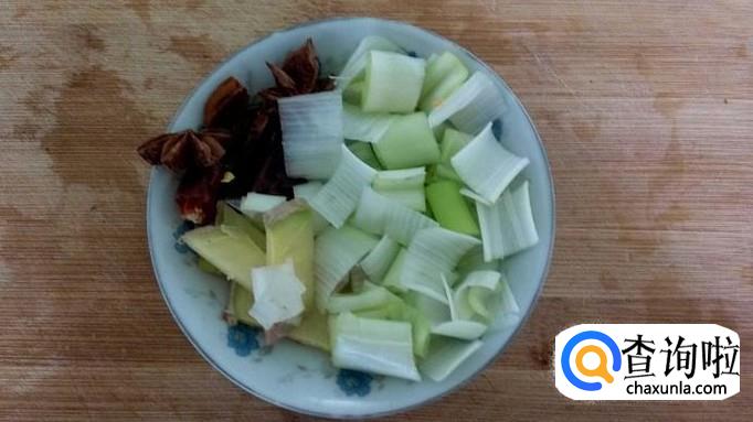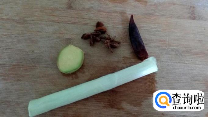 在肋排焯水的过程中,我们可以准备一会要用的辣椒、葱段、八角、姜都洗净,葱切段、姜切片、辣椒洗净切好。
