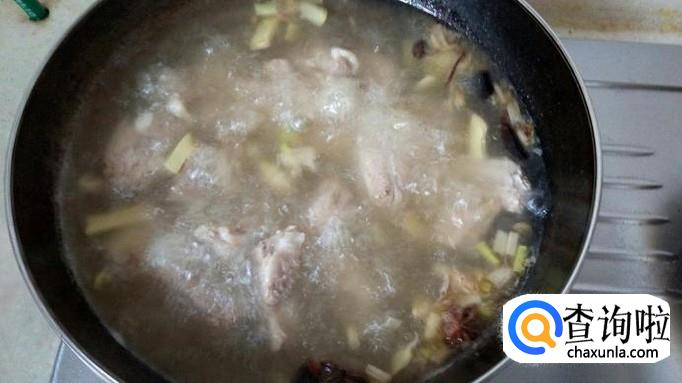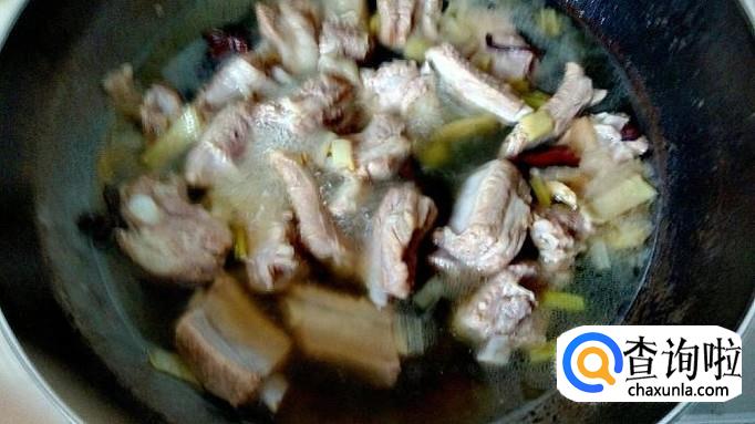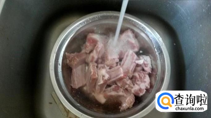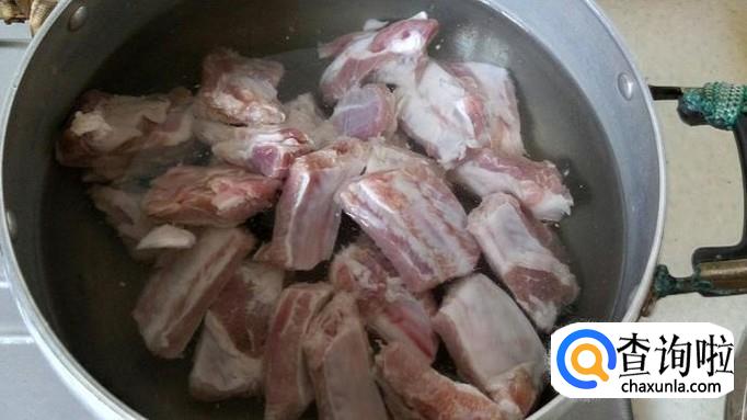 下面把洗好的肋排先焯水煮一下去血水。把洗好的肋排放入煮锅,加入清水末过肋排,点火开煮,开锅大火煮3-5分钟,捞出焯水的肋排待用。