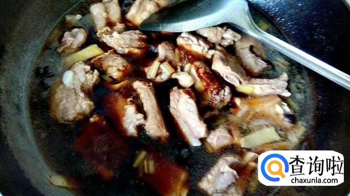 加醋翻炒后,就该加够足量的热水闷炖,加水烧开后大火炖两三分钟,改中小火慢炖,整个炖的过程中最好不要再加水。